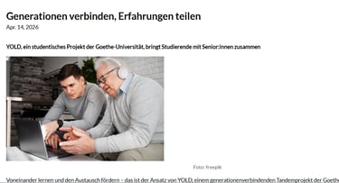 Wir freuen uns, dass die Zeitschrift "Stadt Frankfurt im Blick" (ehemals Seniorenzeitung Frankfurt) über YOLD berichtet. Die Zeitung richtet sich an Ältere in Frankfurt und macht Projekte, Veranstaltungen und Kulturprojekte für Senior*innen in Frankfurt bekannt. Herzlichen Dank an die Redaktion!